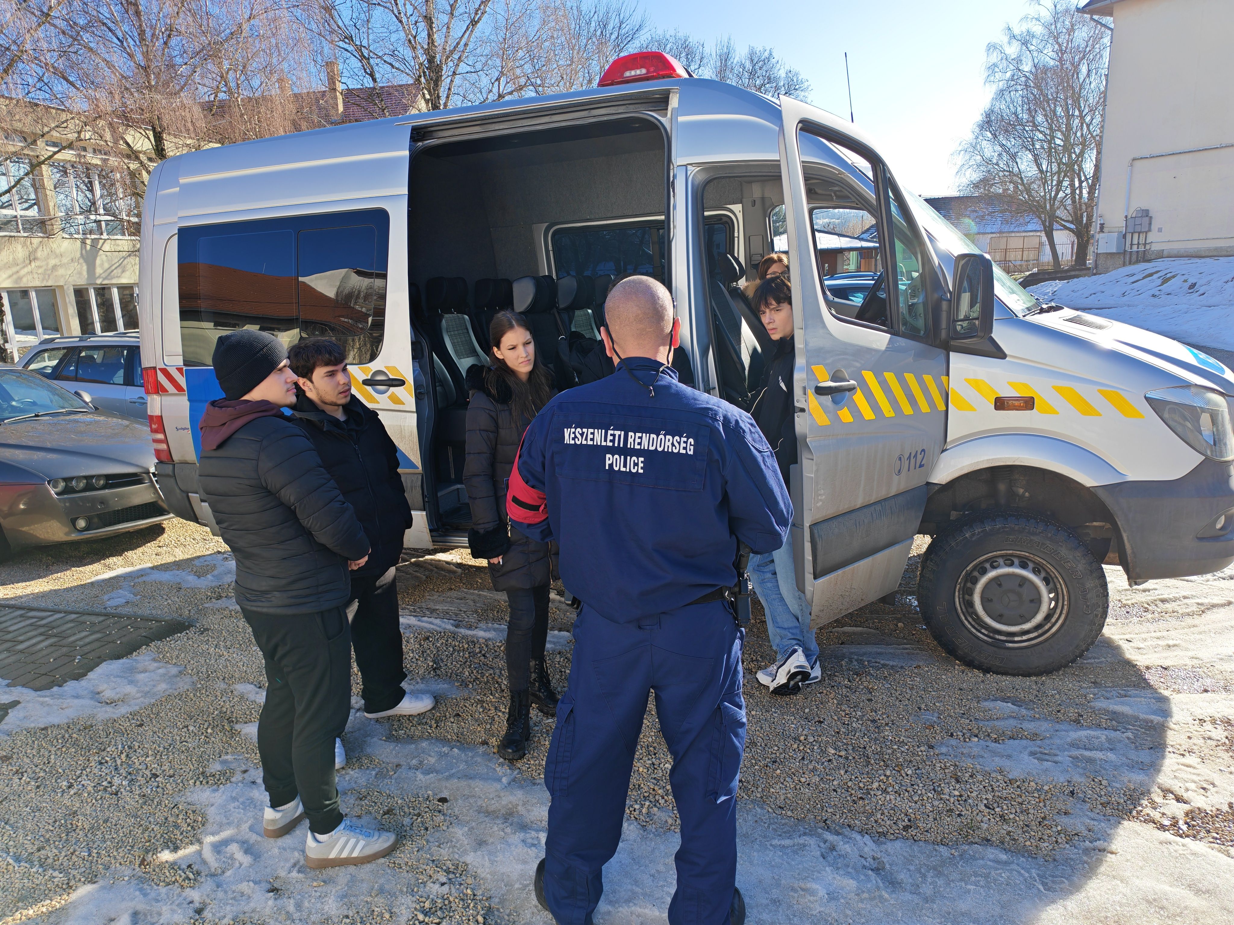 A Készenléti rendőrség Kaposvár és a Vármegyei Rendőrfőkapitányság részéről tartottak előadást és bemutatót rendészeti technikus tanulóinknak.